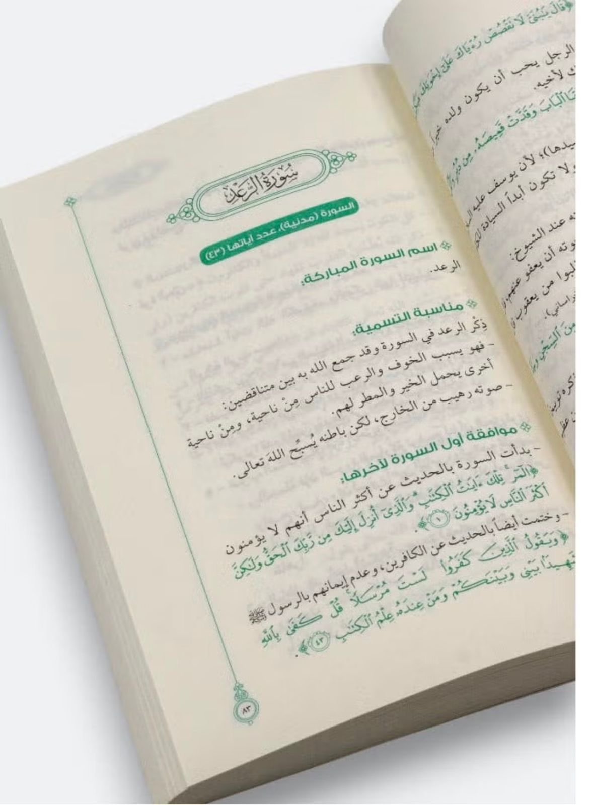 🕌 ربط الآيات بالواقع: يساعدك الكتاب على استخراج الدروس العملية والفوائد التربوية من كل سورة لتطبيقها في حياتك.