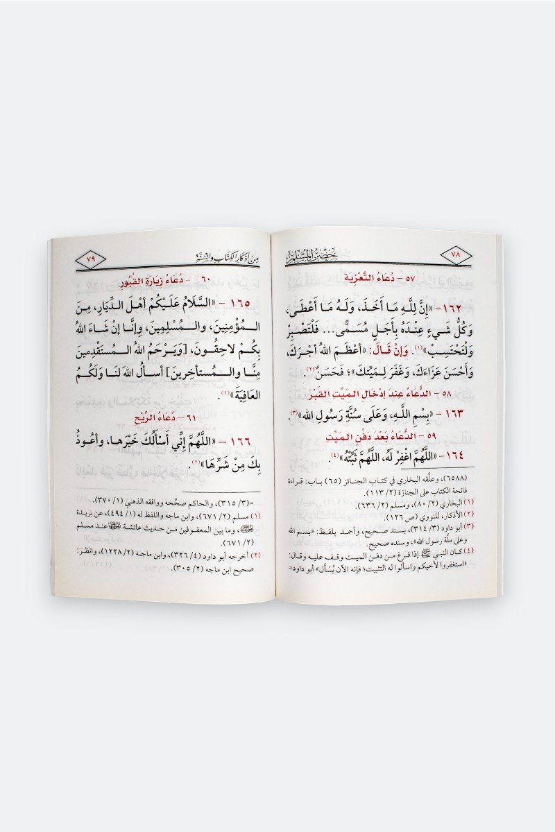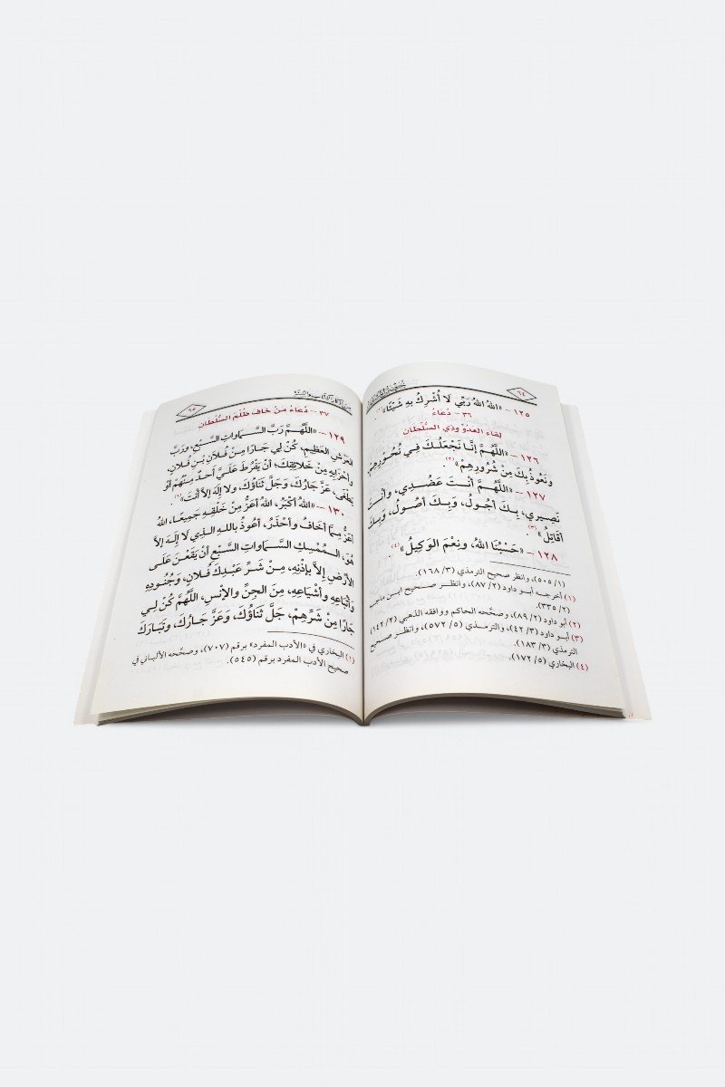 | التغطية | يغطي كل مناسبات الحياة اليومية: الصباح والمساء، النوم والاستيقاظ، الأكل والشرب، دخول المنزل والخروج منه، المسجد، السفر، الزيارة، المطر، الرياح، الكسوف، الحج، العيد، وأكثر من 50 مناسبة | |
