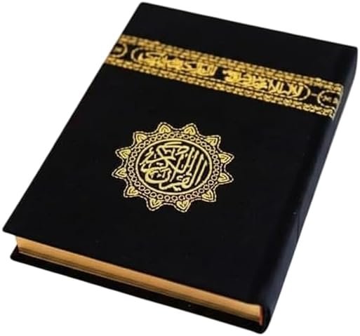 مصحف فاخر بغلاف قماشي فاخر مستوحى من كسوة الكعبة المشرفة، بنفس التصميم الأسود المهيب والتطريز الذهبي اللامع. متوفر بـ 3 مقاسات تناسب جميع الأذواق والاستخدامات.