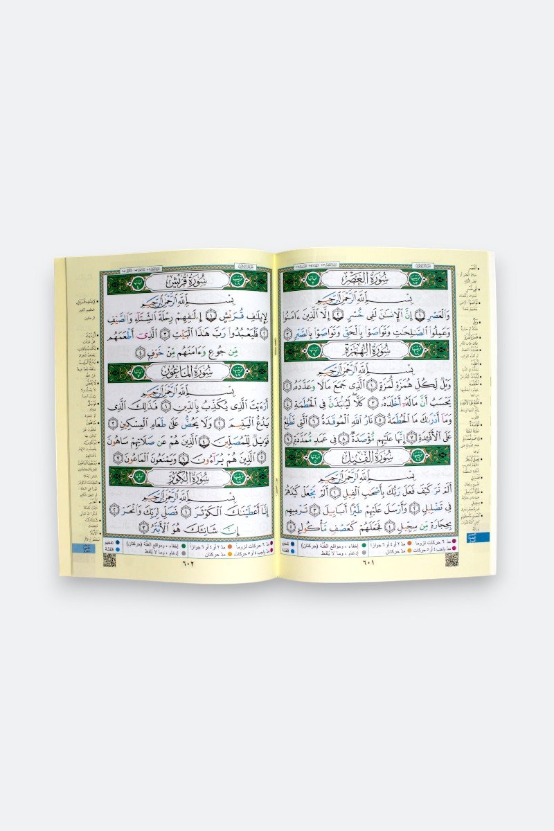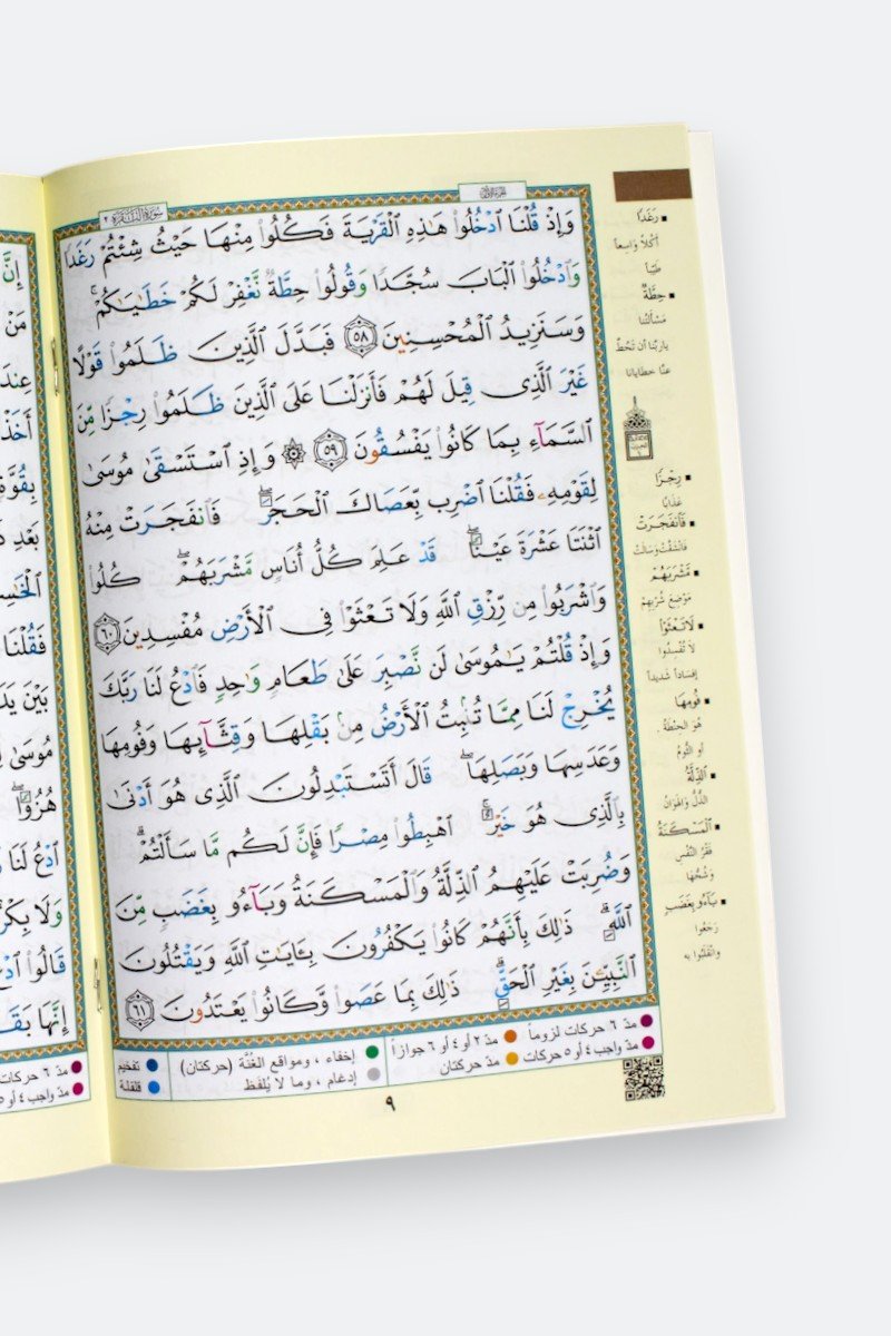 | التجويد | ألوان التجويد (قلقلة، غنة، مد، إدغام) لتسهيل القراءة الصحيحة | |
