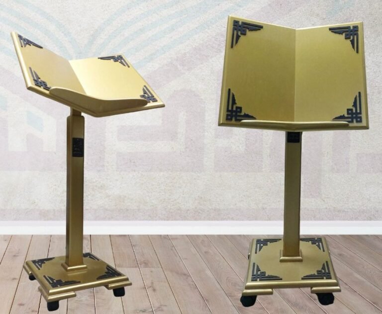 حامل مصحف خشبي مودرن انسيابي – خفيف الوزن قابل لتعديل الارتفاع | 4 عجلات لسهولة الحركة | تصميم عصري وسعر اقتصادي